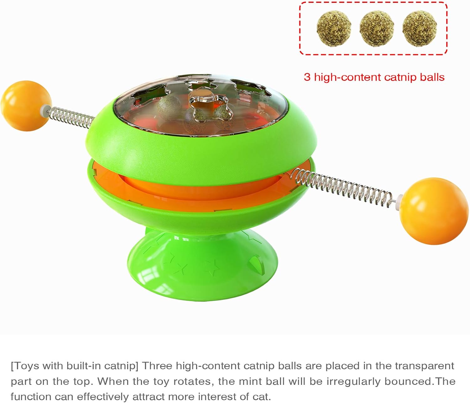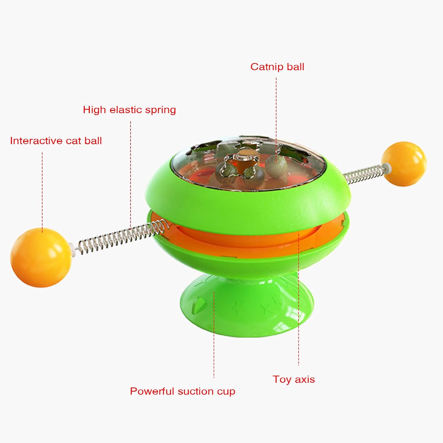 On top sits a transparent dome of temptation — packed with 3 high-content catnip balls, ready to bounce, swirl, and spin the second your cat touches it.